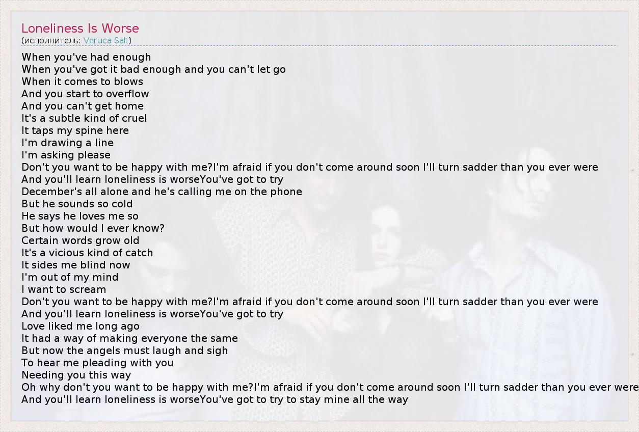 А как ты думаешь, о чем песня "Loneliness Is Worse" ?