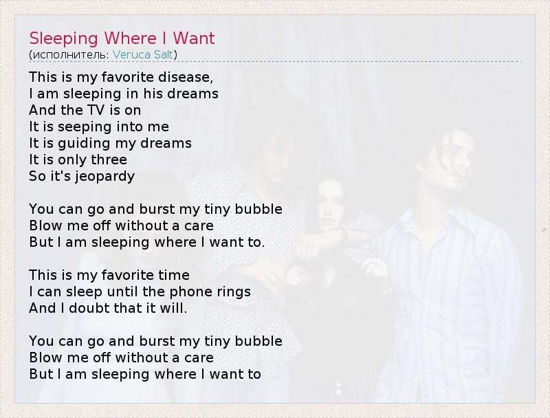 А как ты думаешь, о чем песня "Sleeping Where I Want" ?