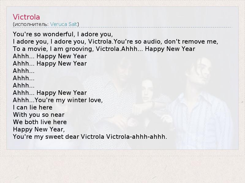 I adore you, I adore you, Victrola.You're so audio, don't remove me,