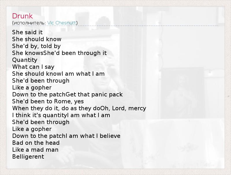 She said it She should know She'd by, told by She knowsShe'd been through it Quantity What can I say She should knowI am what I am She'd been through Like a gopher Down to the patchGet that panic pack She'd been to Rome, yes When they do it, do as they doOh, Lord, mercy I think it's quantityI am what I am She'd been through Like a gopher Down to the patchI am what I believe Bad on the head Like a mad man Belligerent