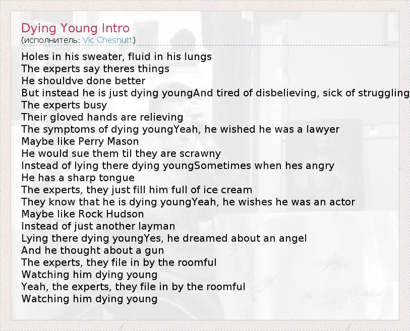А как ты думаешь, о чем песня "Dying Young Intro" ?