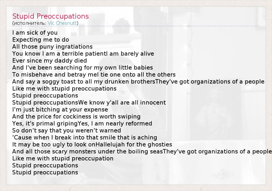 А как ты думаешь, о чем песня "Stupid Preoccupations" ?