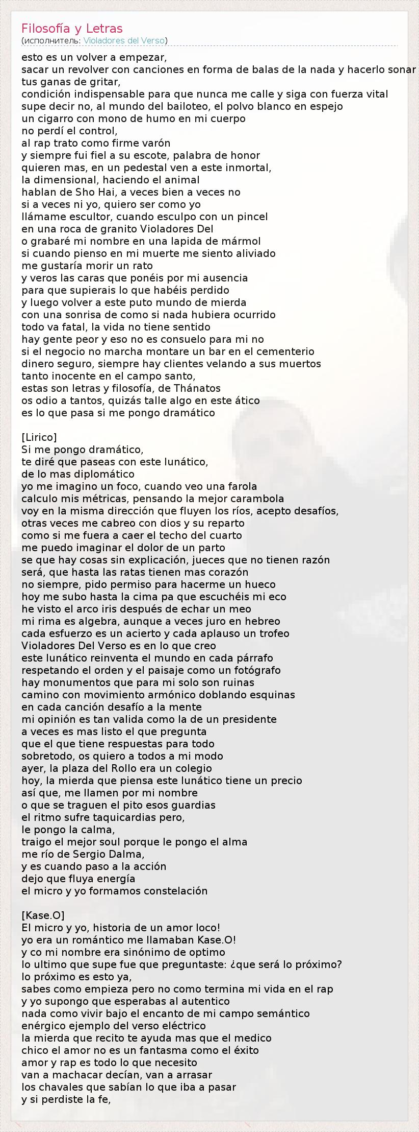 А как ты думаешь, о чем песня "Filosofía y Letras" ?