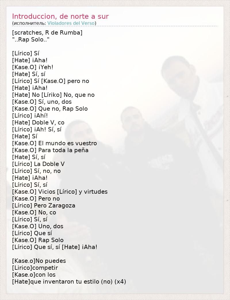 А как ты думаешь, о чем песня "Introduccion, de norte a sur" ?