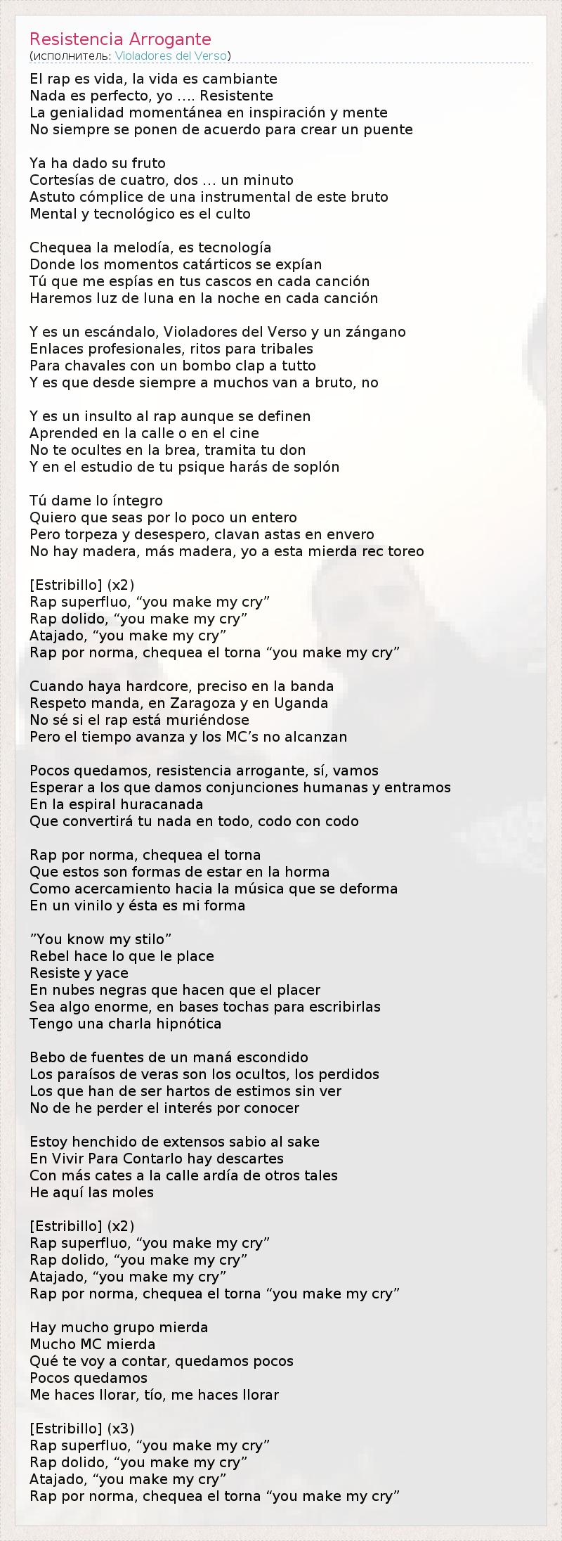 А как ты думаешь, о чем песня "Resistencia Arrogante" ?