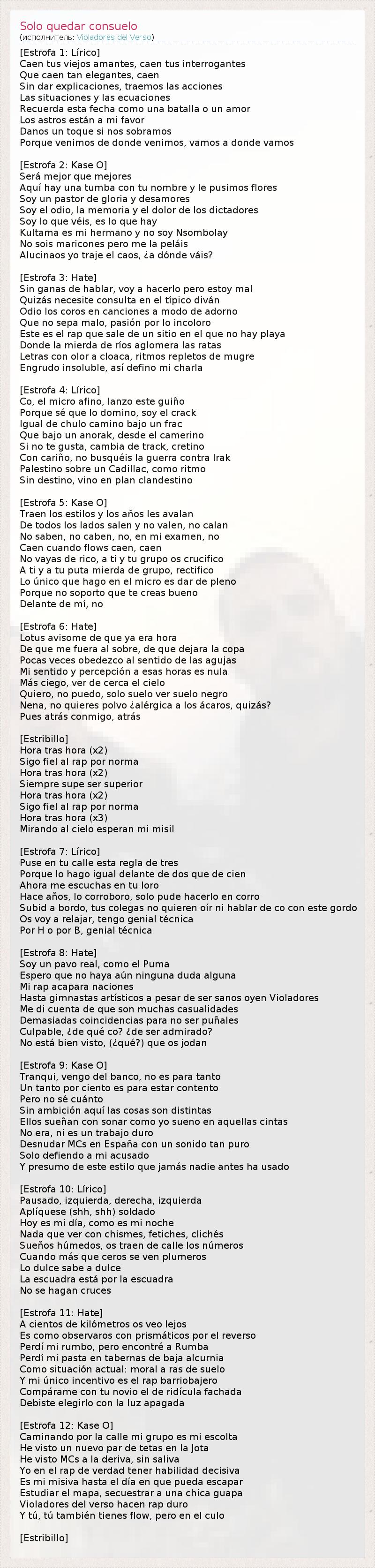А как ты думаешь, о чем песня "Solo quedar consuelo" ?