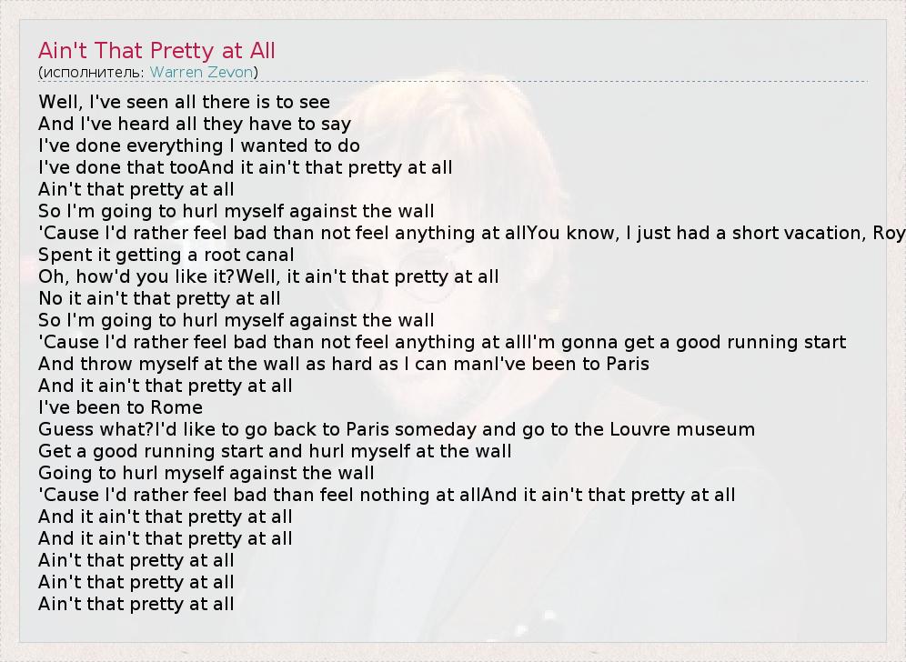 ГлавнаяИсполнителиWarren ZevonAin't That Pretty at All