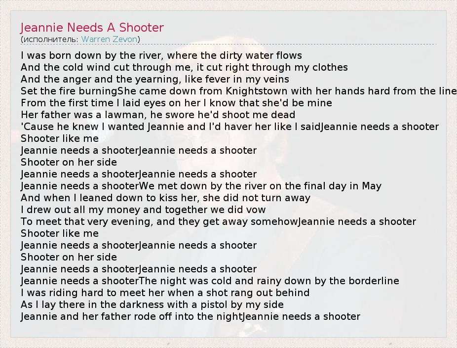 А как ты думаешь, о чем песня "Jeannie Needs A Shooter" ?