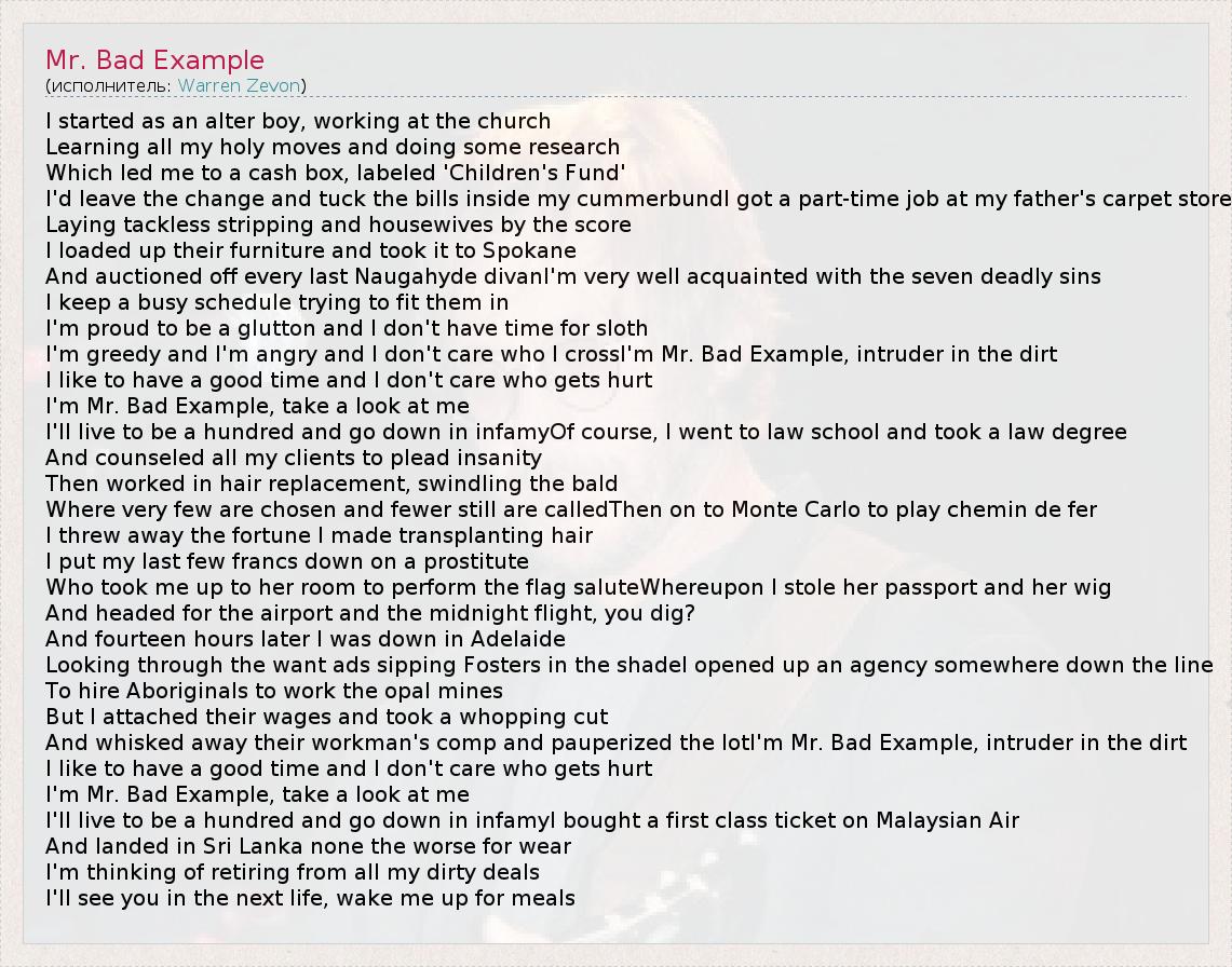 А как ты думаешь, о чем песня "Mr. Bad Example" ?