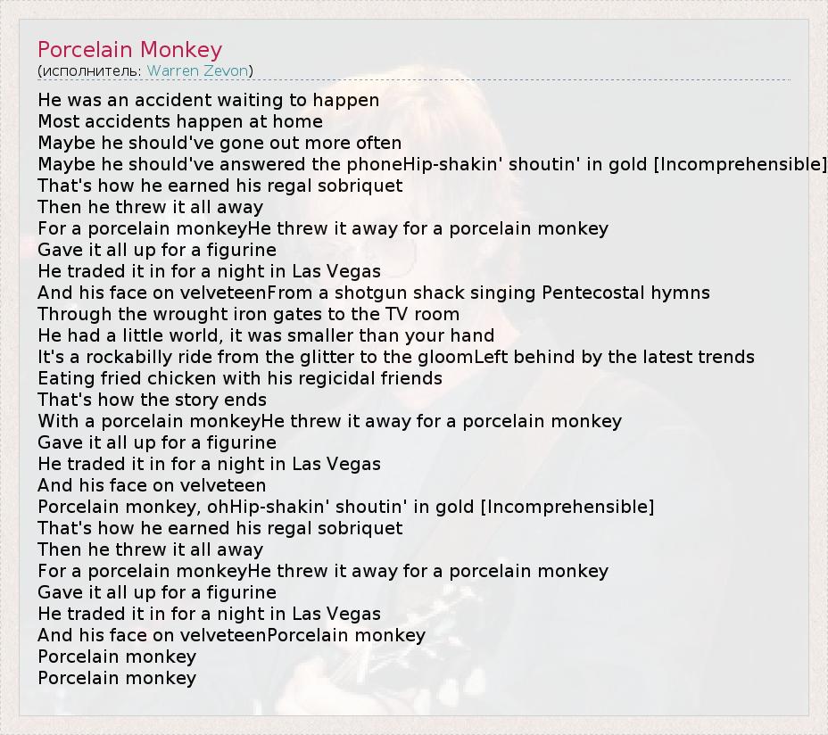 А как ты думаешь, о чем песня "Porcelain Monkey" ?