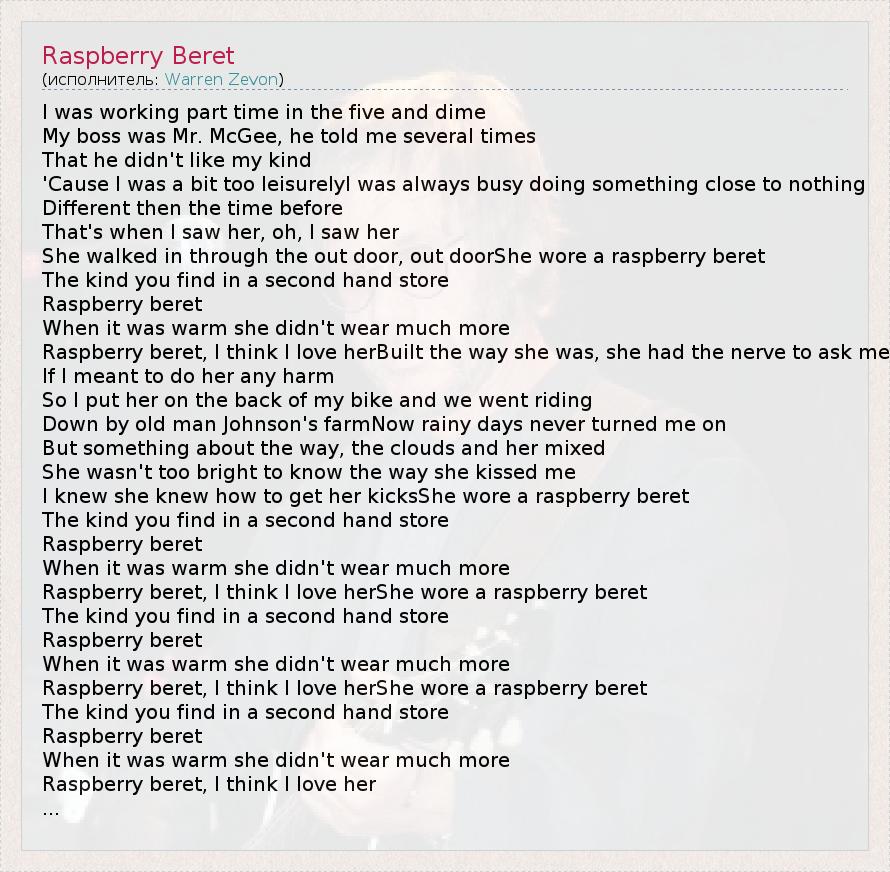 А как ты думаешь, о чем песня "Raspberry Beret" ?