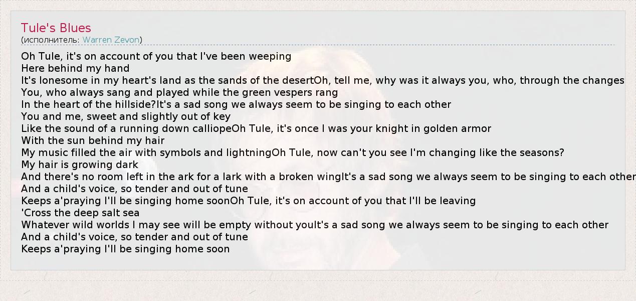 А как ты думаешь, о чем песня "Tule's Blues" ?