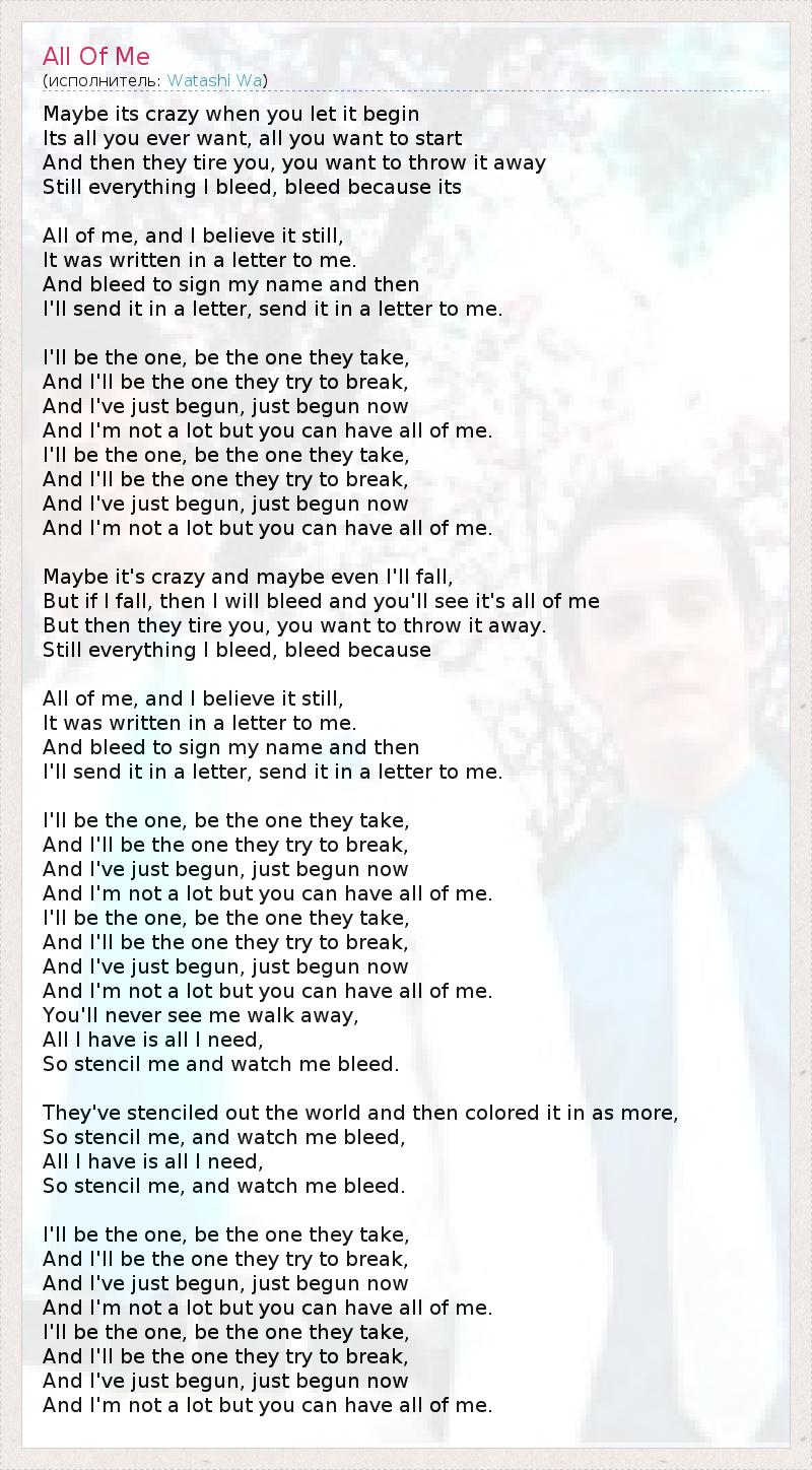 А как ты думаешь, о чем песня "All Of Me" ?