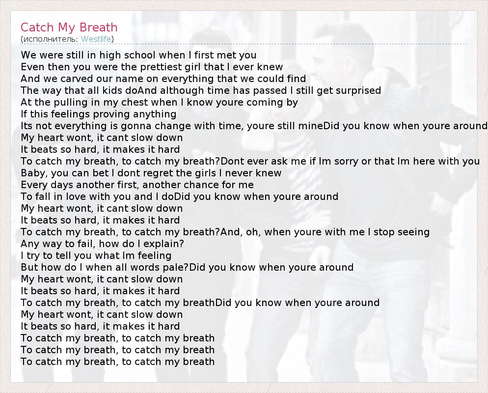 To catch my breath, to catch my breath?Dont ever ask me if Im sorry or that Im here with you