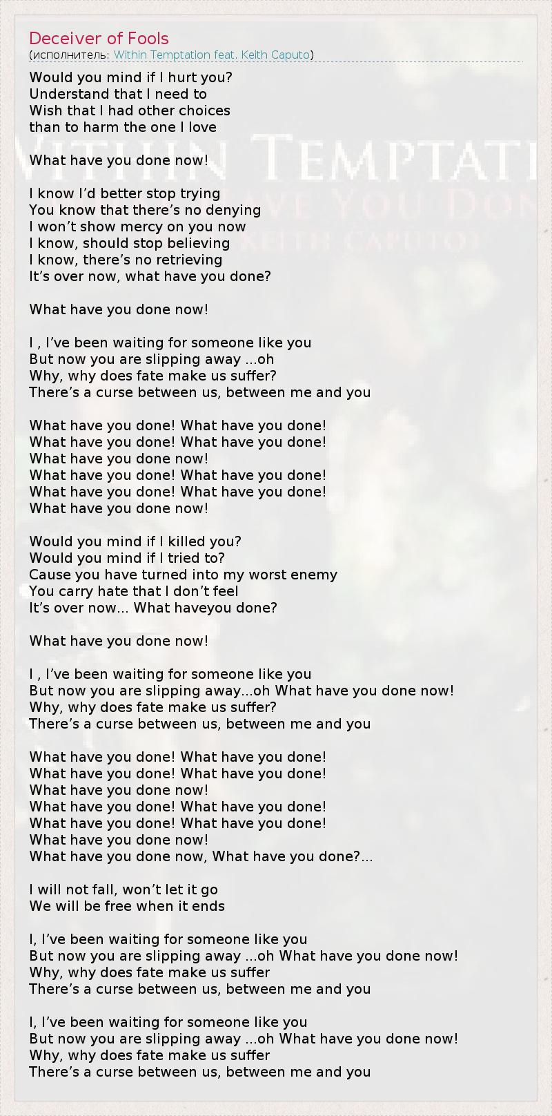 А как ты думаешь, о чем песня "Deceiver of Fools" ?