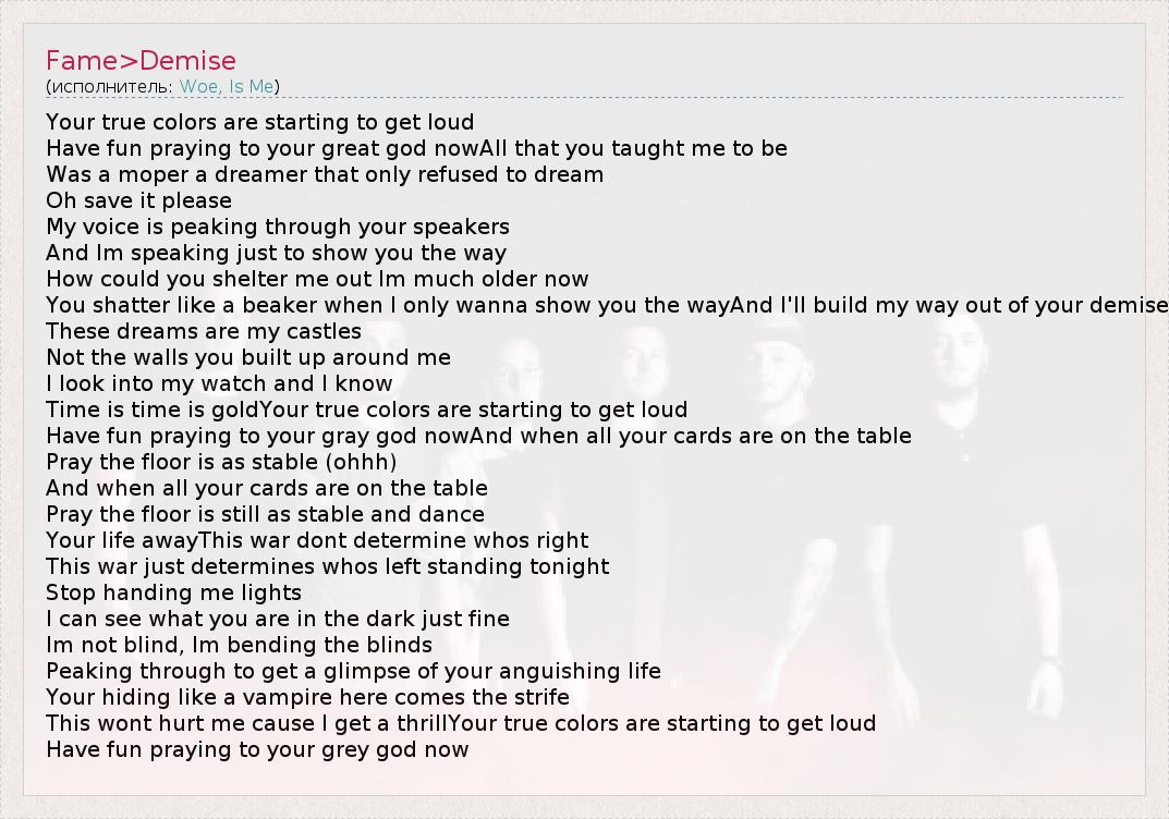 А как ты думаешь, о чем песня "Fame>Demise" ?