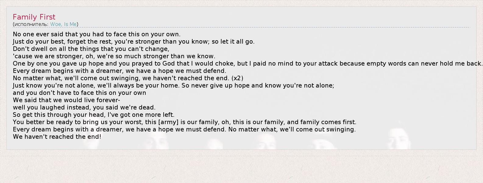 You better be ready to bring us your worst, this [army] is our family, oh, this is our family, and family comes first.