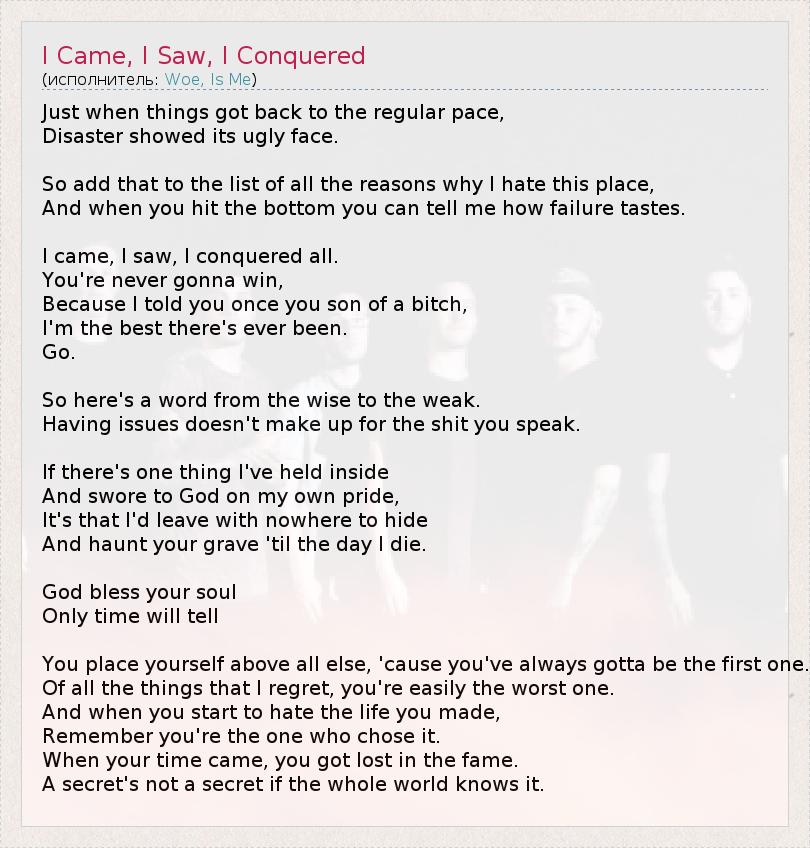 ГлавнаяИсполнителиWoe, Is MeI Came, I Saw, I Conquered