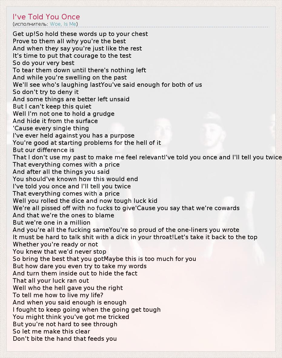 А как ты думаешь, о чем песня "I've Told You Once" ?