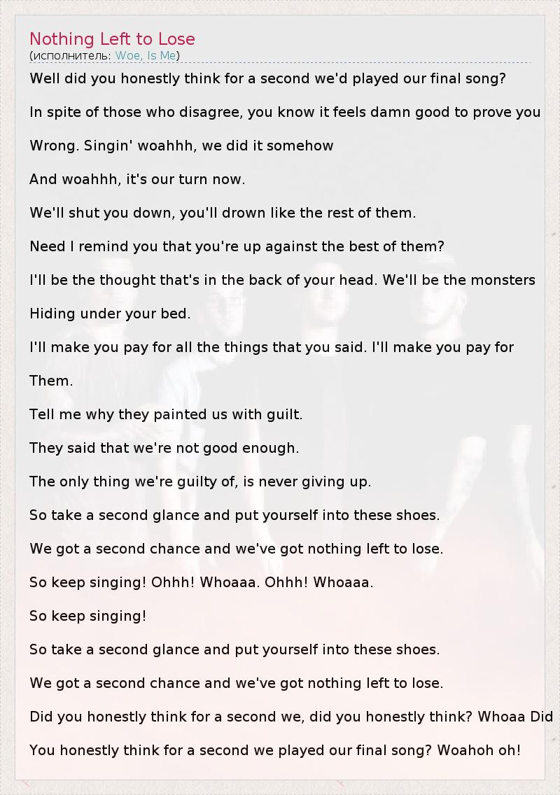 А как ты думаешь, о чем песня "Nothing Left to Lose" ?