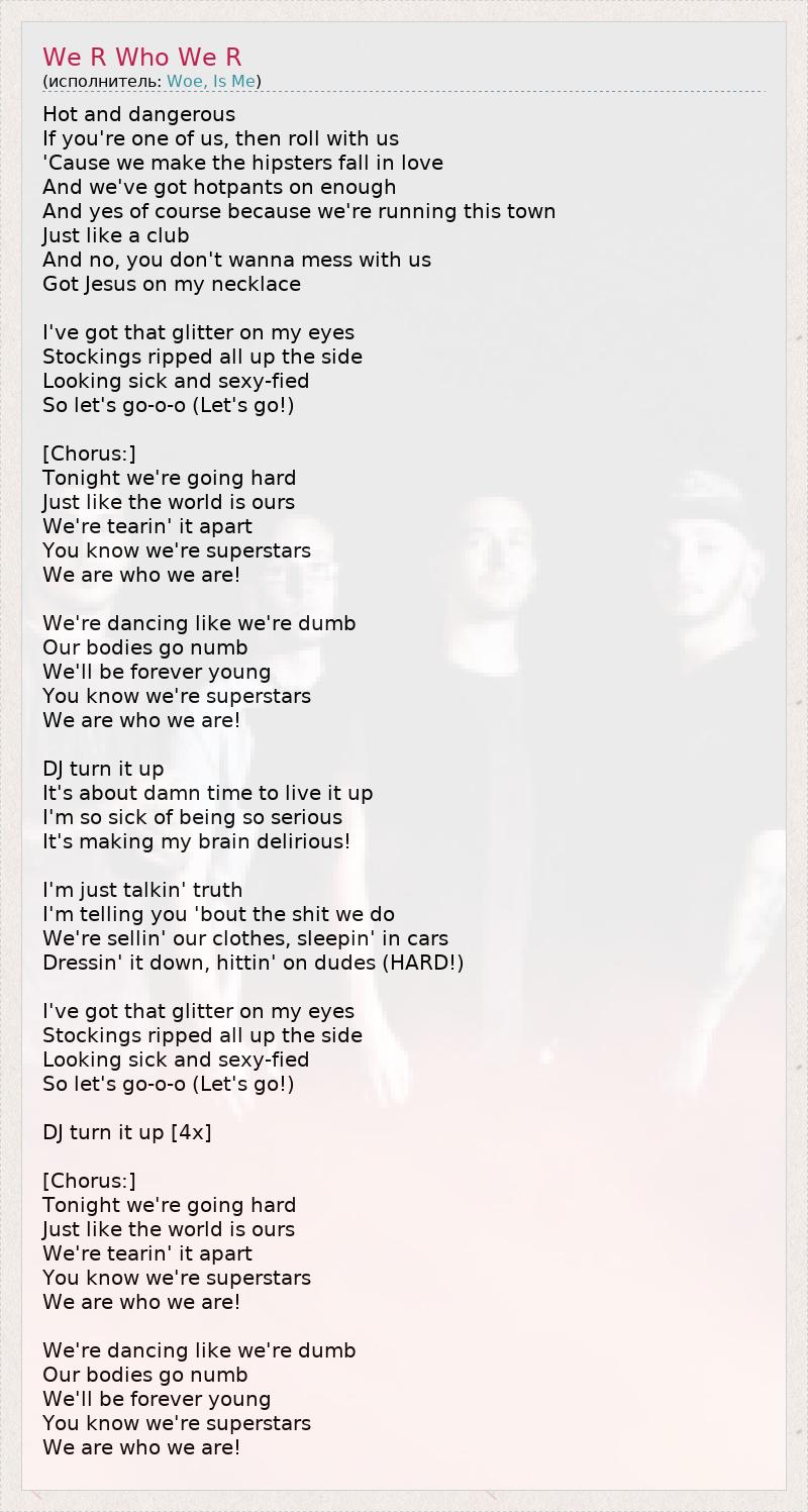 А как ты думаешь, о чем песня "We R Who We R" ?
