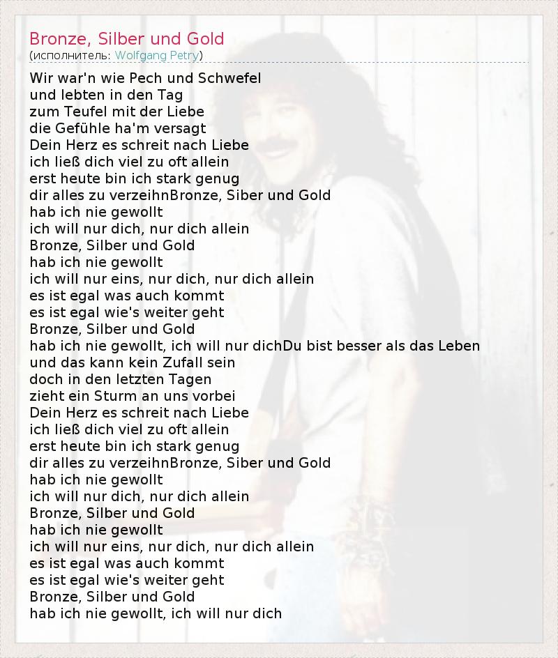 А как ты думаешь, о чем песня "Bronze, Silber und Gold" ?