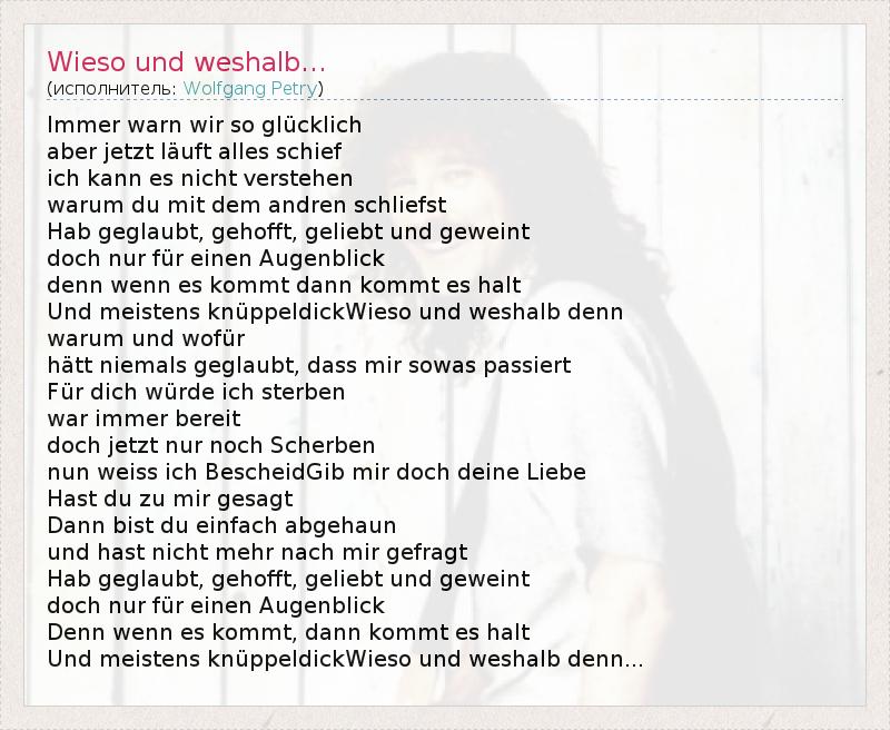 А как ты думаешь, о чем песня "Wieso und weshalb..." ?