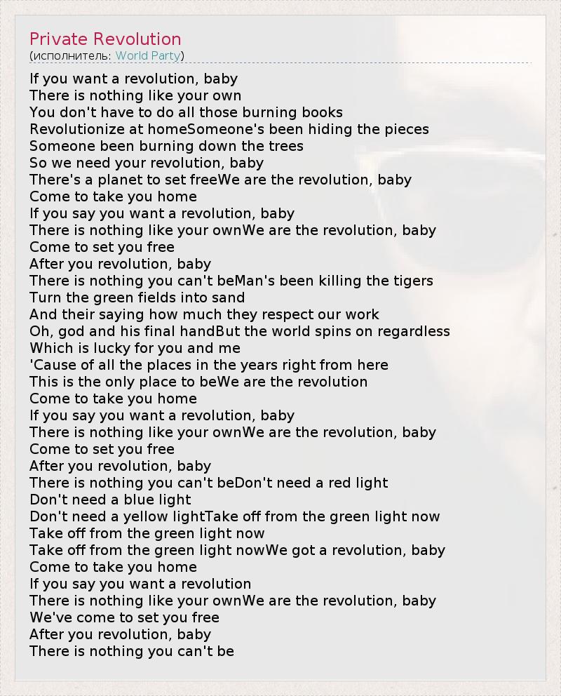 А как ты думаешь, о чем песня "Private Revolution" ?