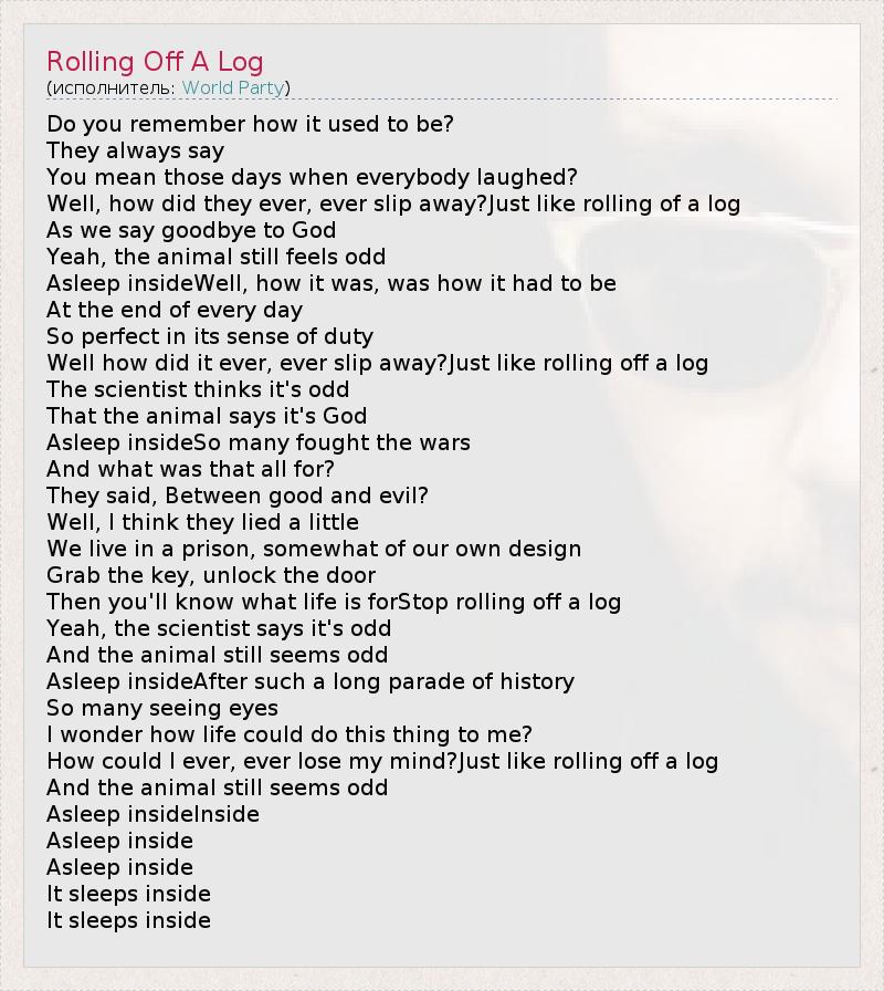 А как ты думаешь, о чем песня "Rolling Off A Log" ?