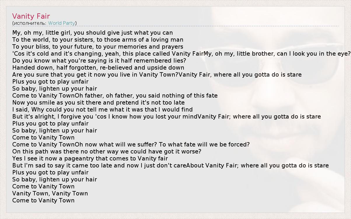 А как ты думаешь, о чем песня "Vanity Fair" ?