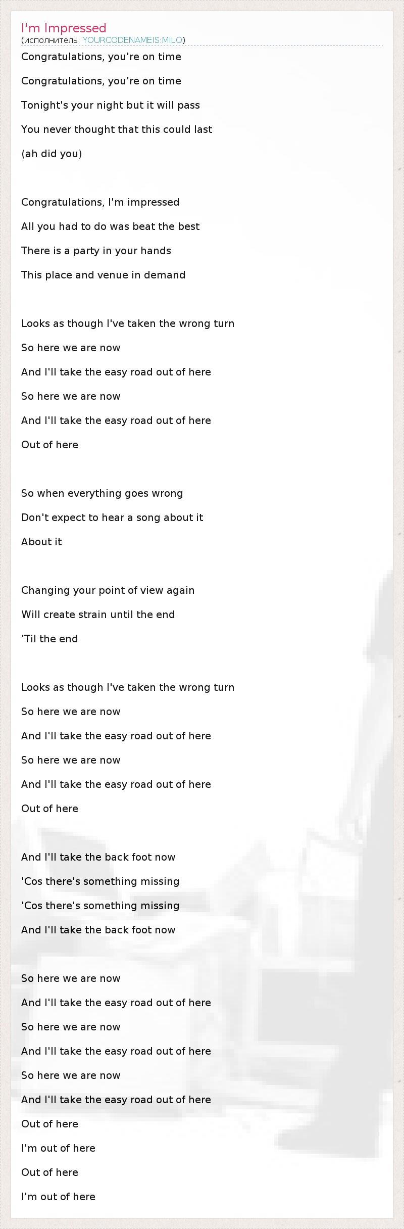 А как ты думаешь, о чем песня "I'm Impressed" ?