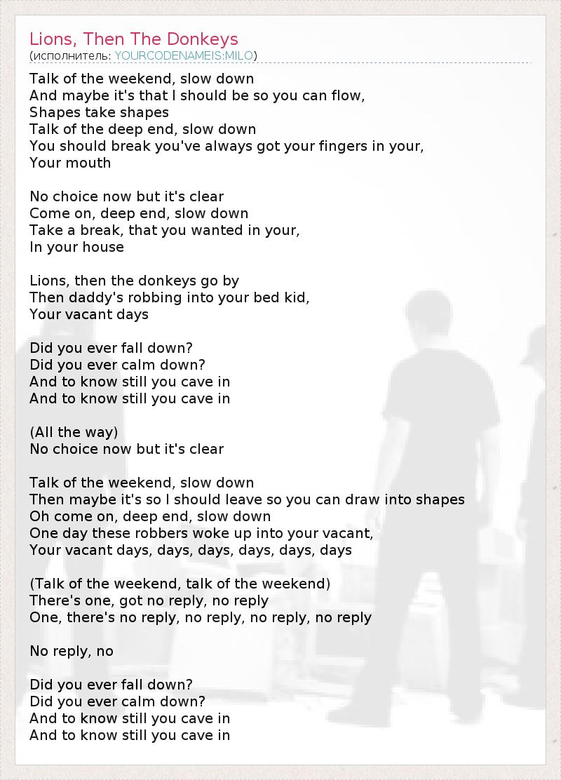 А как ты думаешь, о чем песня "Lions, Then The Donkeys" ?