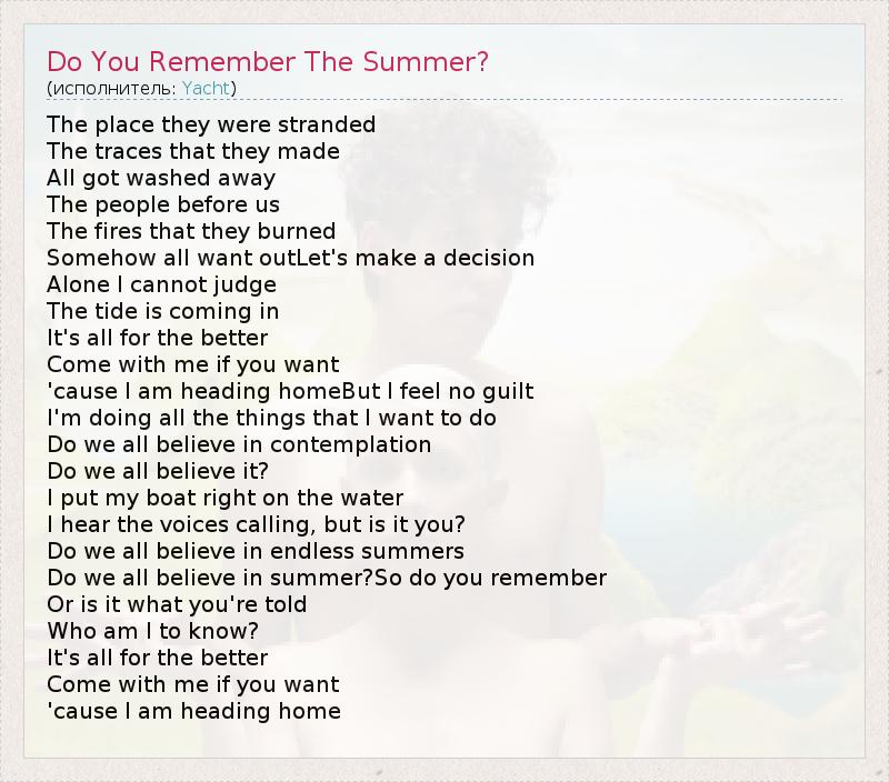 А как ты думаешь, о чем песня "Do You Remember The Summer?" ?