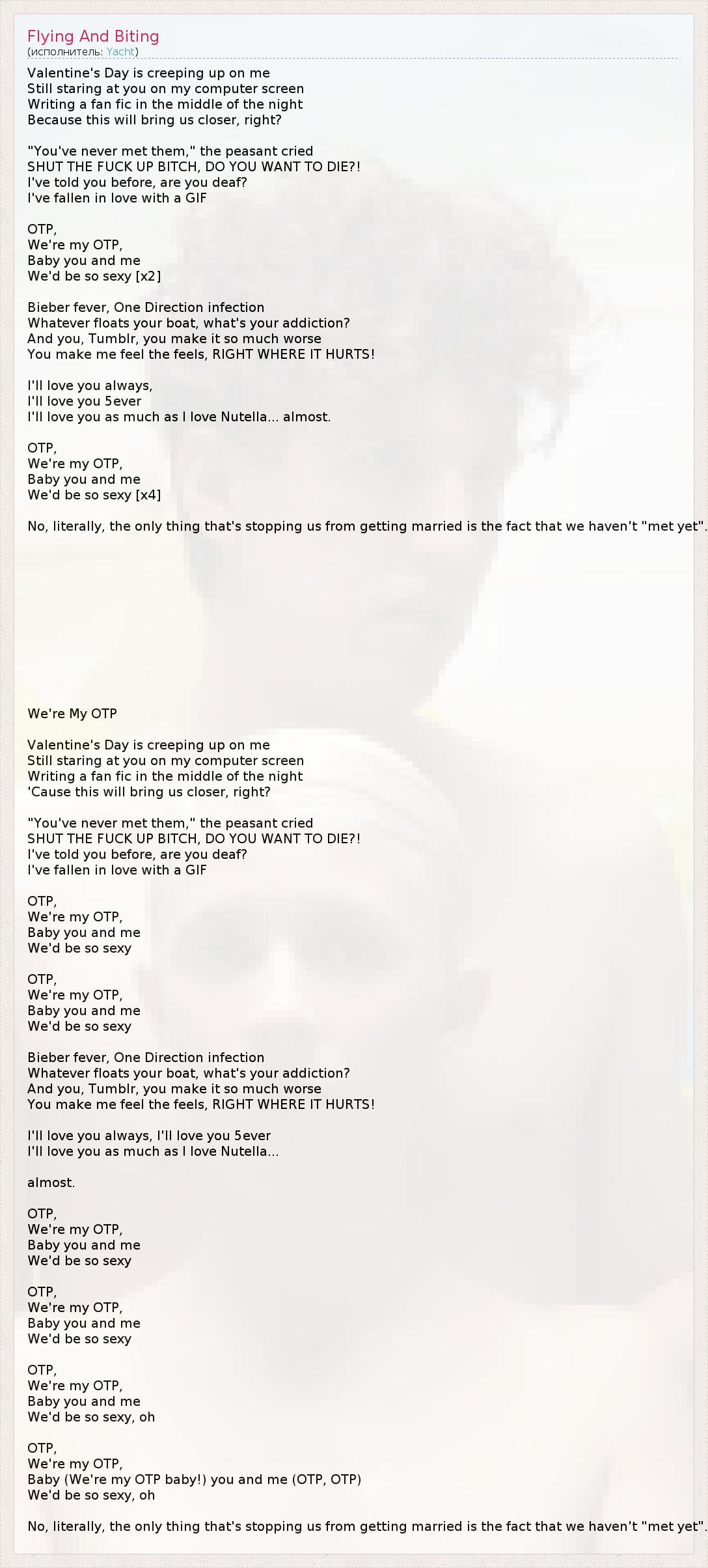 А как ты думаешь, о чем песня "Flying And Biting" ?