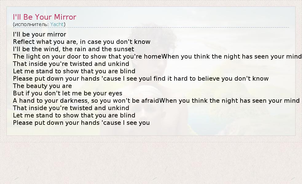А как ты думаешь, о чем песня "I'll Be Your Mirror" ?