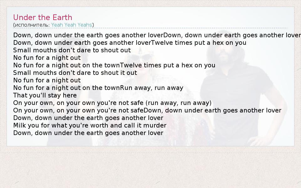 А как ты думаешь, о чем песня "Under the Earth" ?