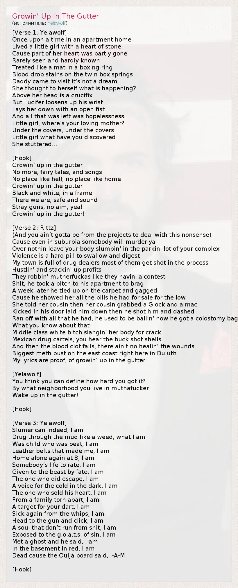 А как ты думаешь, о чем песня "Growin' Up In The Gutter" ?