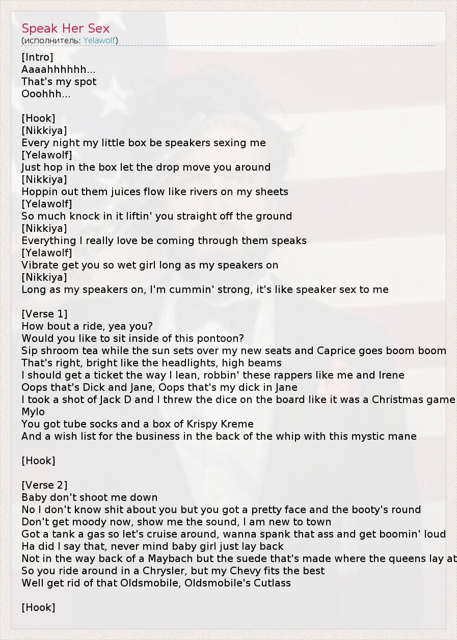 А как ты думаешь, о чем песня "Speak Her Sex" ?