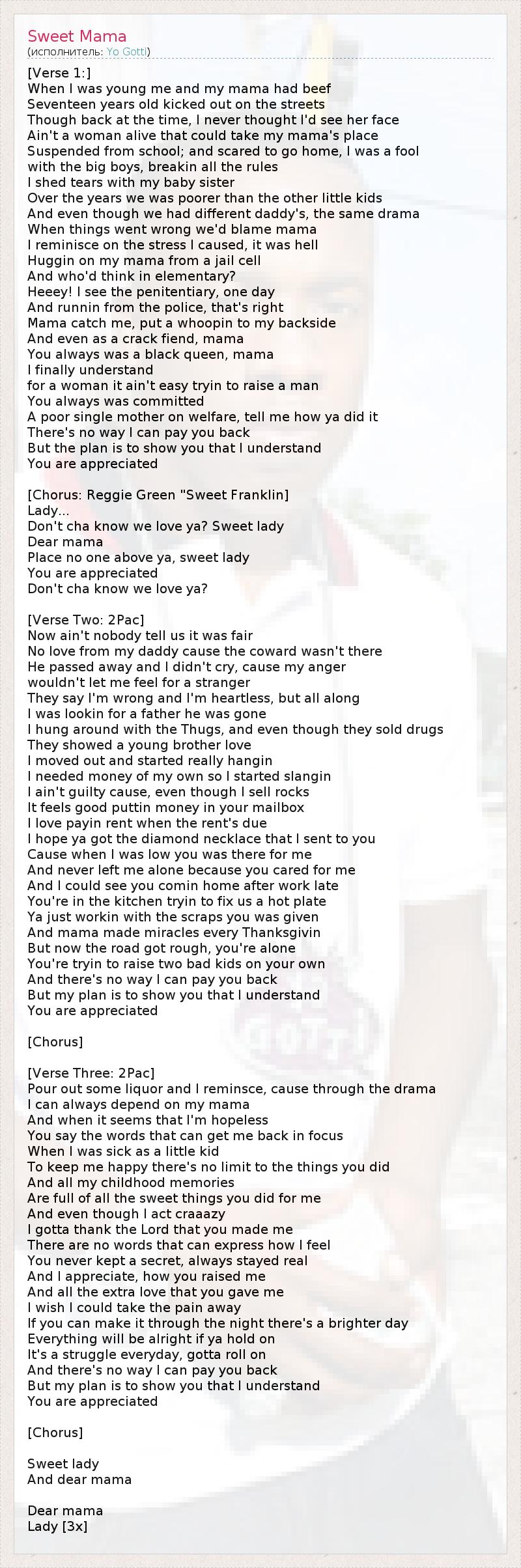 А как ты думаешь, о чем песня "Sweet Mama" ?