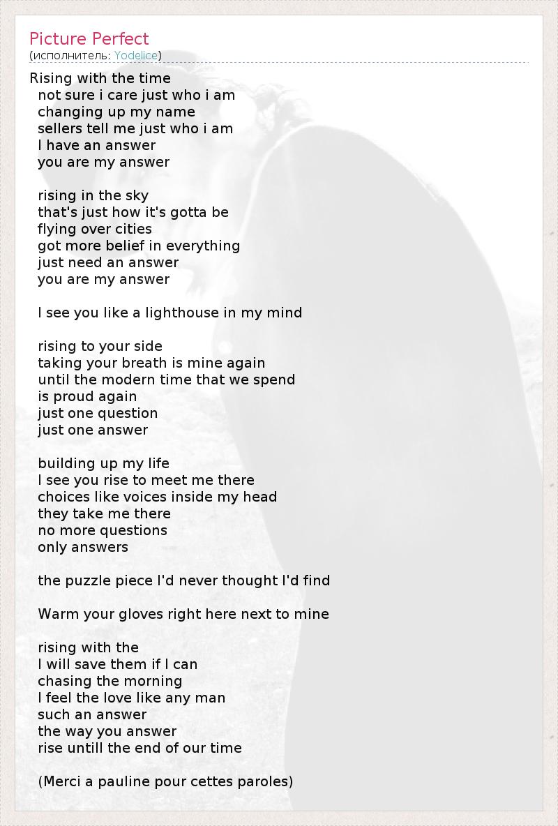 А как ты думаешь, о чем песня "Picture Perfect" ?