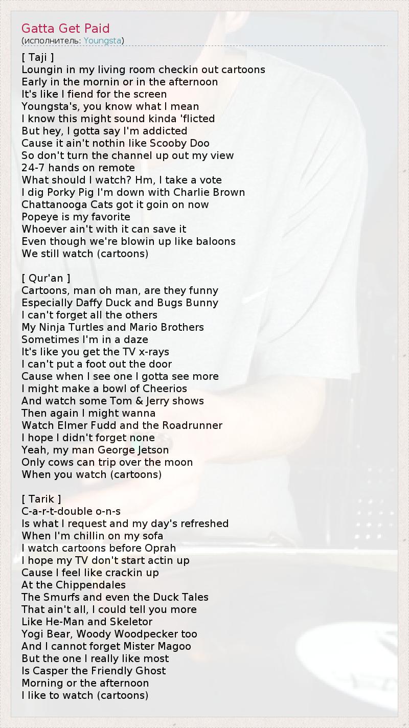 А как ты думаешь, о чем песня "Gatta Get Paid" ?