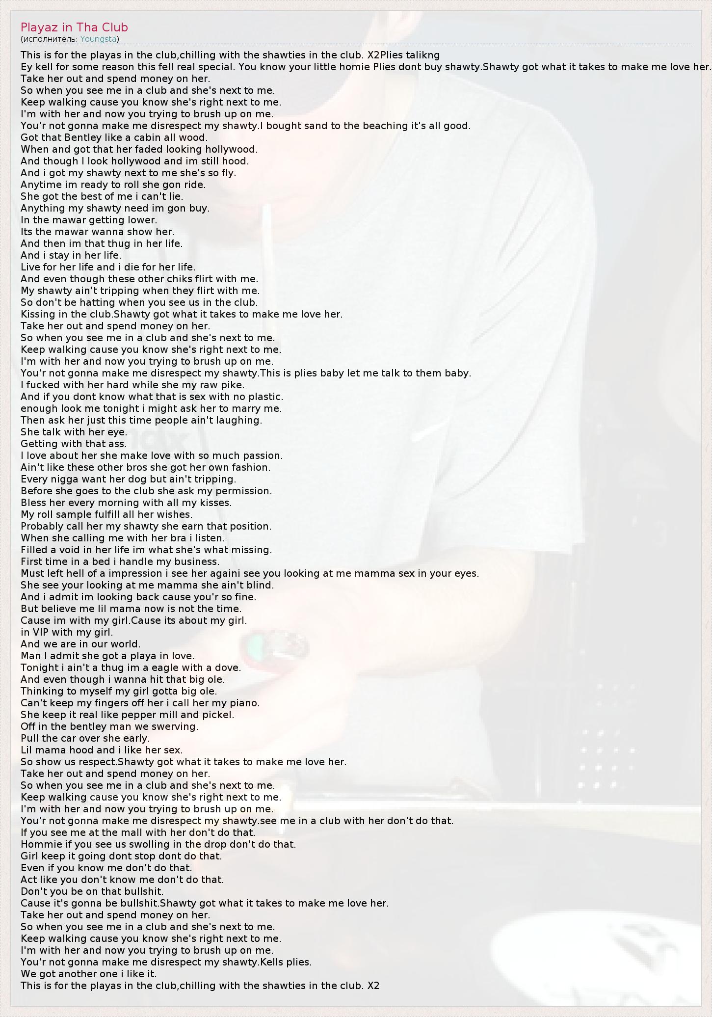 А как ты думаешь, о чем песня "Playaz in Tha Club" ?