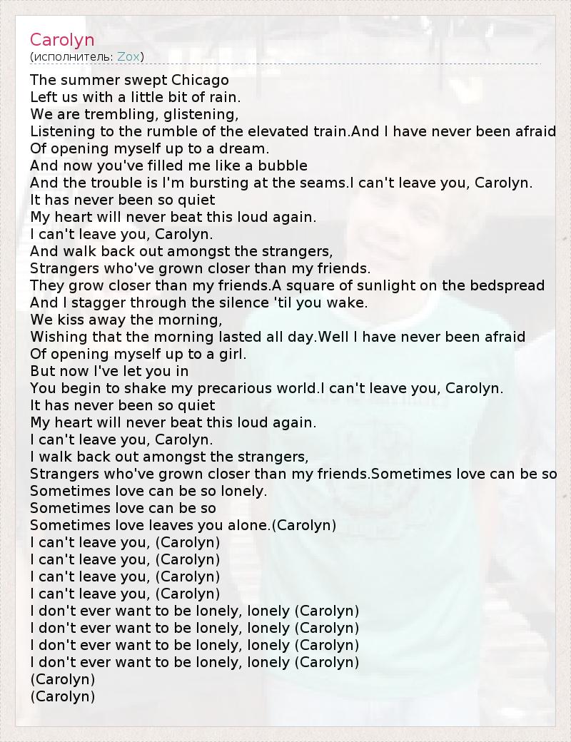 And the trouble is I'm bursting at the seams.I can't leave you, Carolyn.