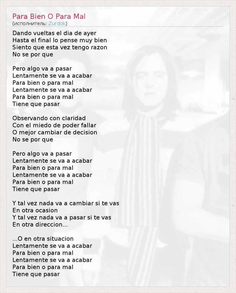 А как ты думаешь, о чем песня "Para Bien O Para Mal" ?