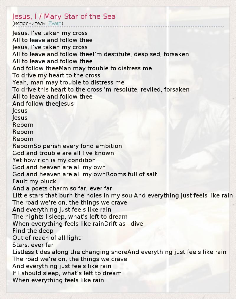 А как ты думаешь, о чем песня "Jesus, I / Mary Star of the Sea" ?