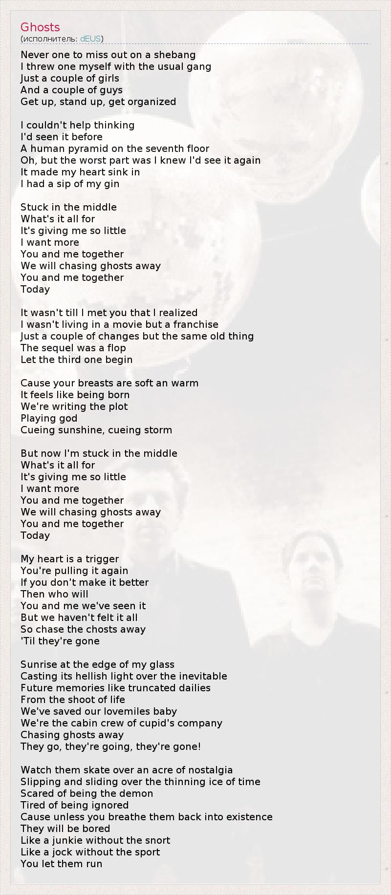 А как ты думаешь, о чем песня "Ghosts" ?