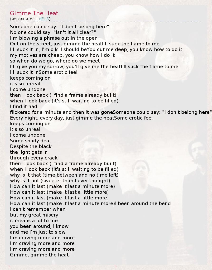 А как ты думаешь, о чем песня "Gimme The Heat" ?