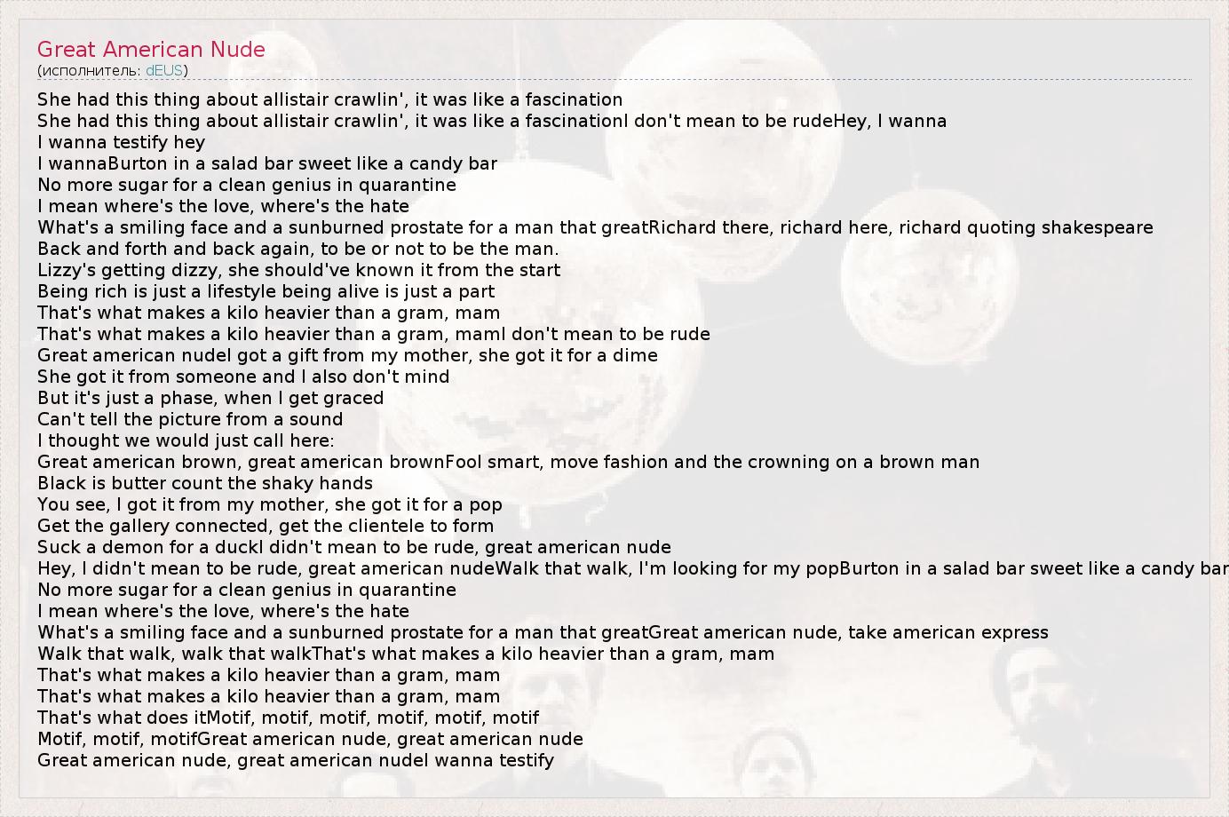 Great american nude, great american nudeI wanna testify