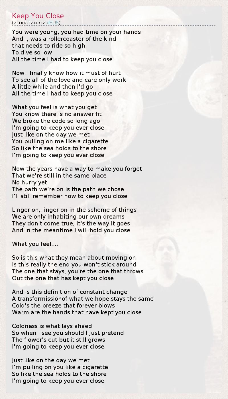 А как ты думаешь, о чем песня "Keep You Close" ?