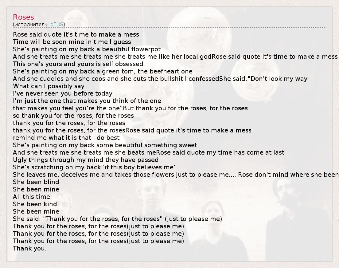 Thank you for the roses, for the roses(just to please me)